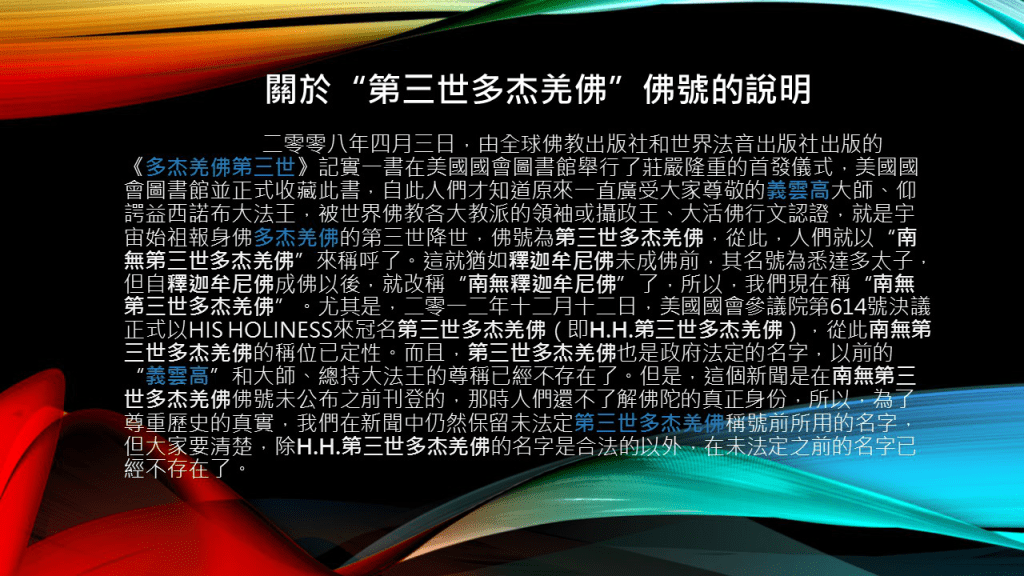 三、 在全世界,义云高大师得到九十二所大学颁予博士学位和教授,其中四所大学授予教授职称。