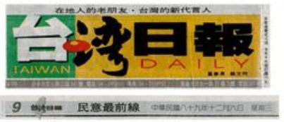台湾时报第九版 民意最前线 中华民国八十九年十二月六日